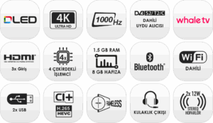 Whale OS işletim sistemiyle Fobem ML55EW8000F, Netflix, YouTube, Spotify gibi popüler uygulamalara kolay erişim sunar. Dahili uydu alıcısı ve enerji verimli yapısıyla muhteşem bir TV keyfi sunar.